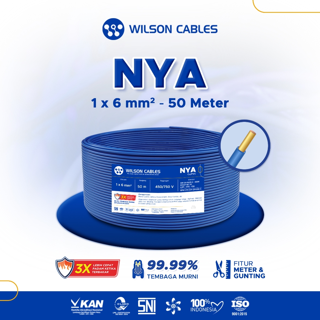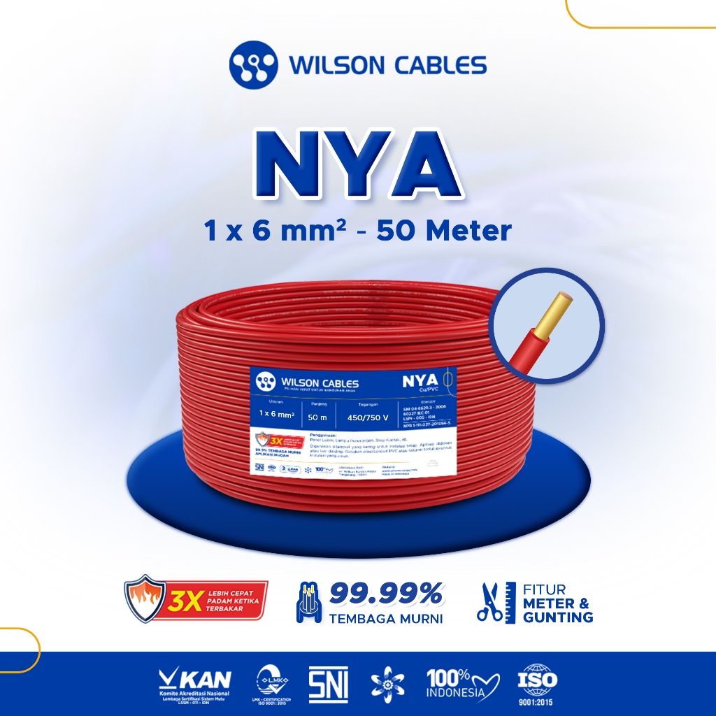 WILSON CABLES - NYA 6 mm² (50 Meter) - Kabel Listrik Tembaga Kawat