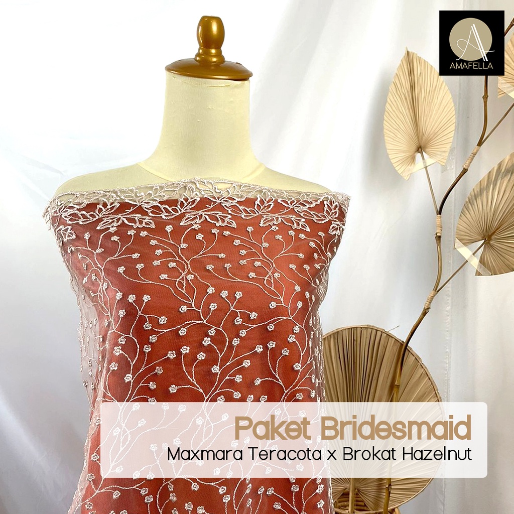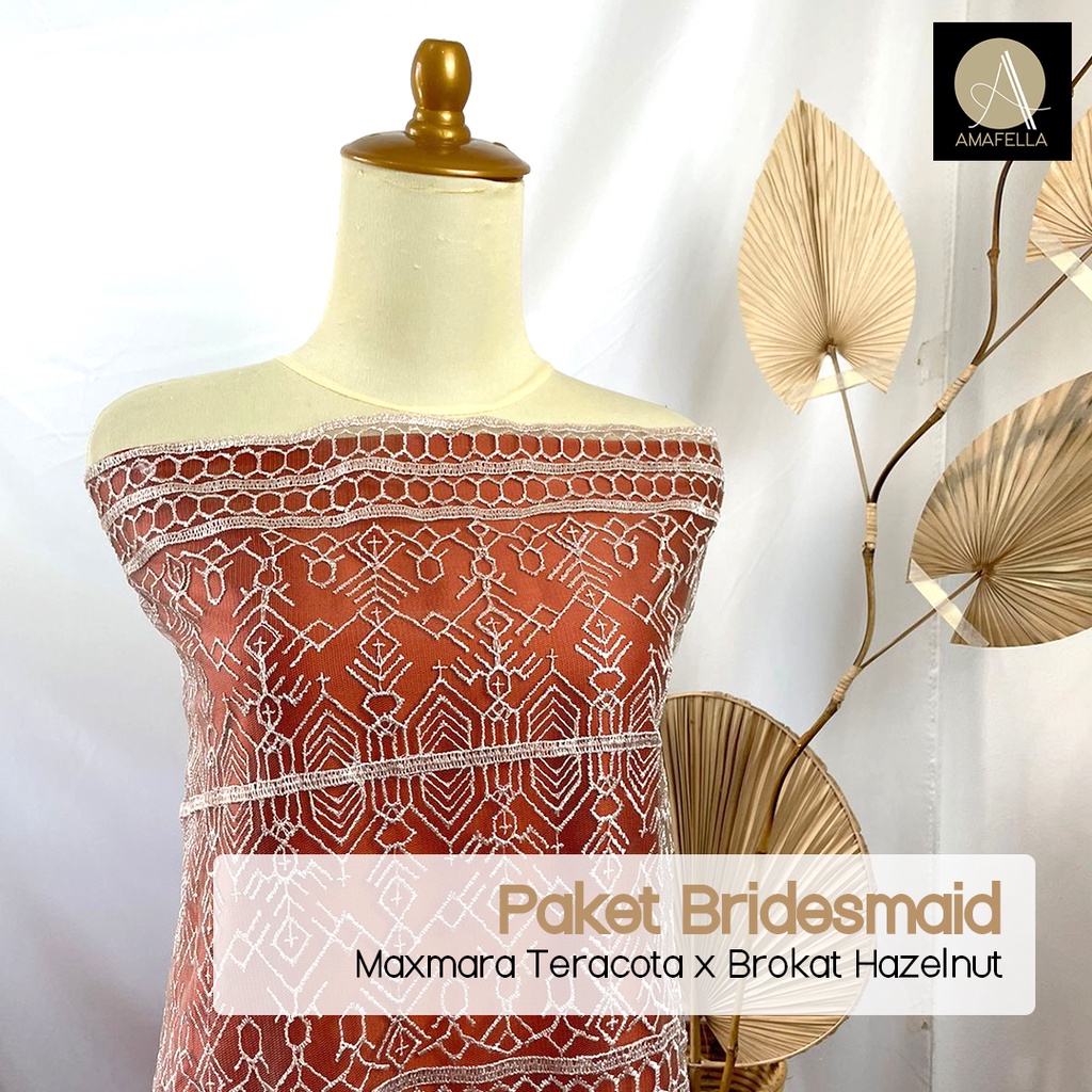 Paket Kain Bridesmaid Seragaman Lamaran Keluarga Lengkap Satin Kebaya Brokat Warna Teracota Hazelnut