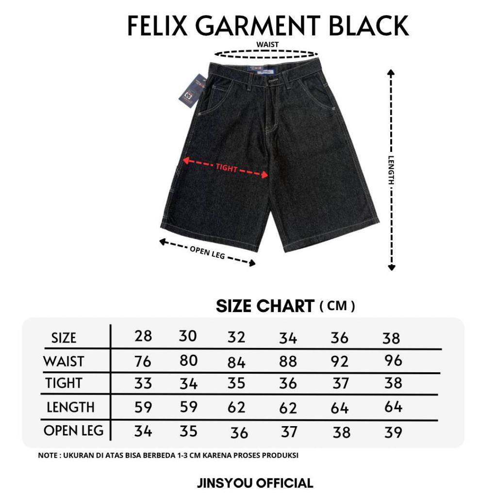 JINSYOU FELIX GARMENT BLACK Celana Jeans Pendek Baggy Cowok Gombrang Spray