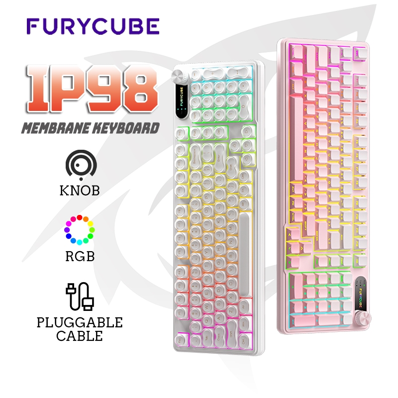 FURYCUBE IP98 Membrane Keyboard Triple Mode Water Proof Knob Control Wireless Gaming Keyboard