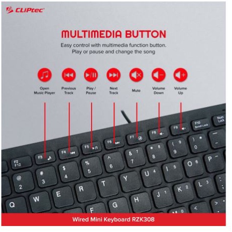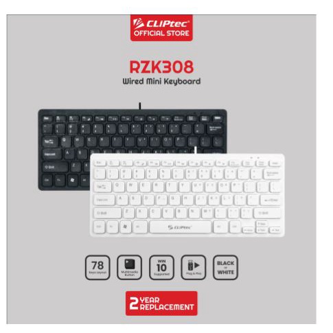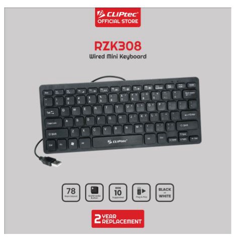 Keyboard cliptec wired usb 2.0 membrane multimedia mini slim tkl 78 keys silent rzk308 rzk-308