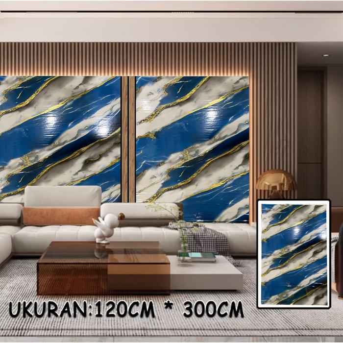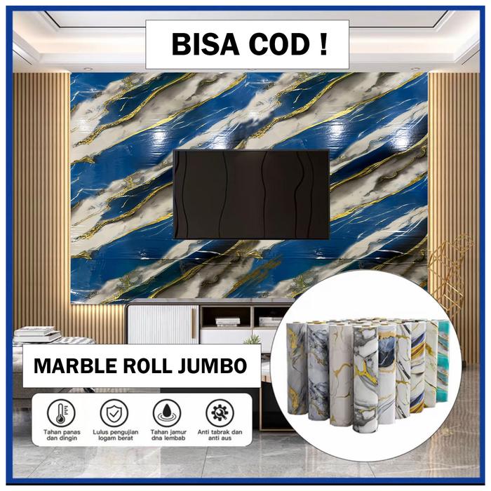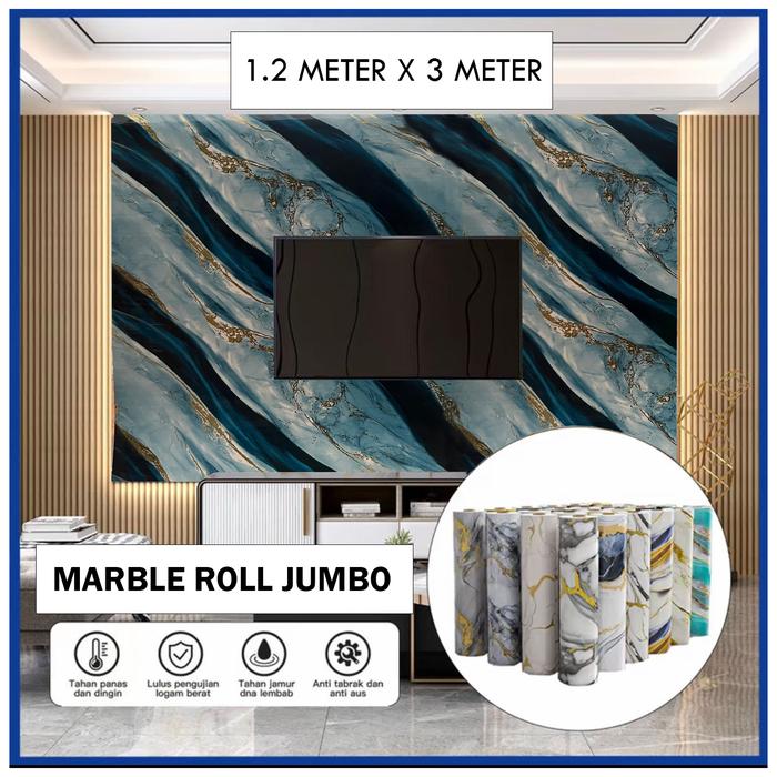 1 ROLL JUMBO 1,2M X 3M WALLPAPER MARBLE GRANIT VINLY MARMER GLOSY MOTIF MARBLE BIRU MUDAH PASANG ANTI AIR PVC - 1 ROLL X1243 1,2M X 3M