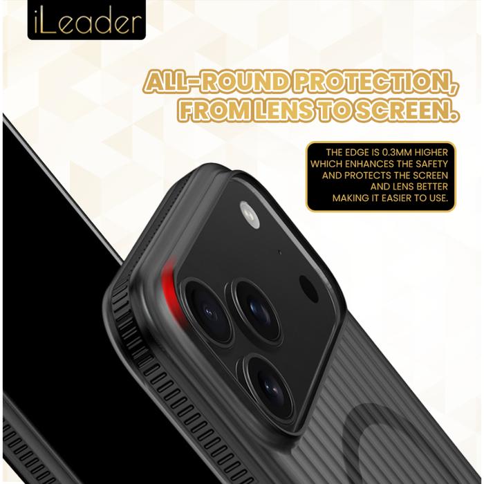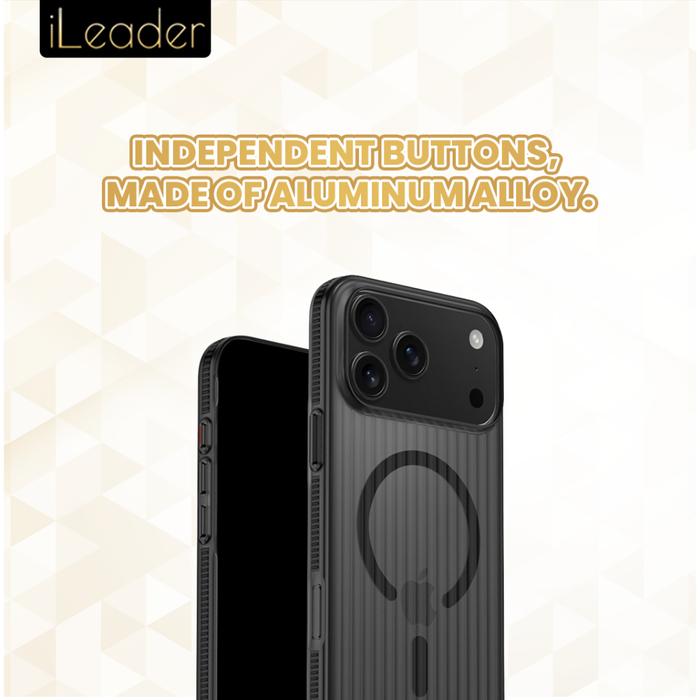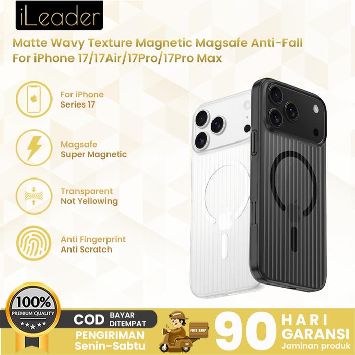 ILEADER CASE IPHONE 17 - TEKSTUR BERGELOMBANG MATTE MAGNETIK MAGSAFE TRANSPARAN ANTI JATUH UNTUK IPHONE 17/17 AIR/17 PRO/17 PRO MAX - BLACK, I17