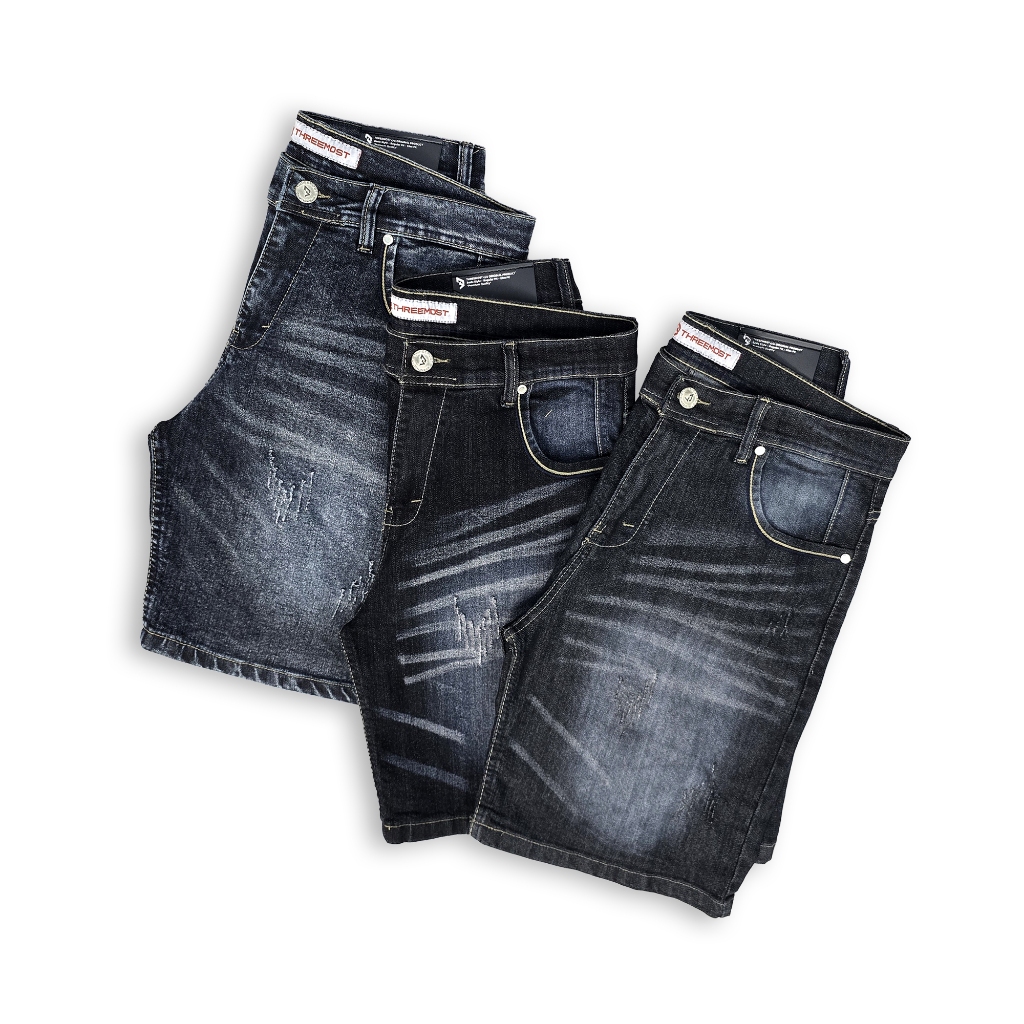 THREEMOST Celana Jeans Pendek Pria Stretch Melar Distro Bermuda Premium