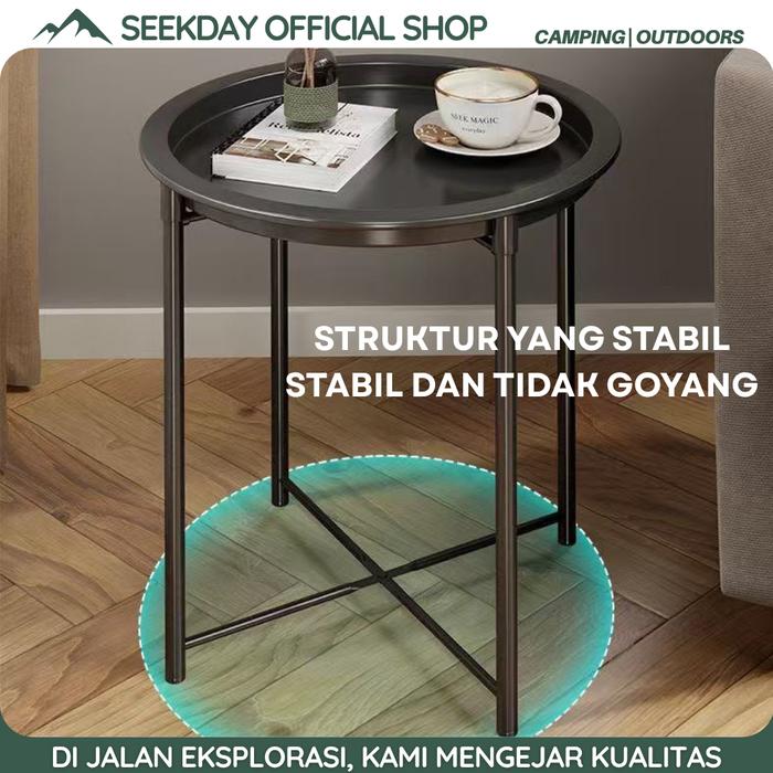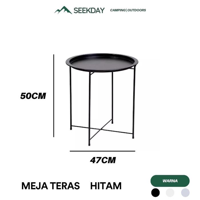 SEEKDAY MEJA TERAS MEJA BESI TEMPA SEDERHANA MEJA AESTHETIC CAFE BULAT - LIPAT DAN DIPASANG - BLACK