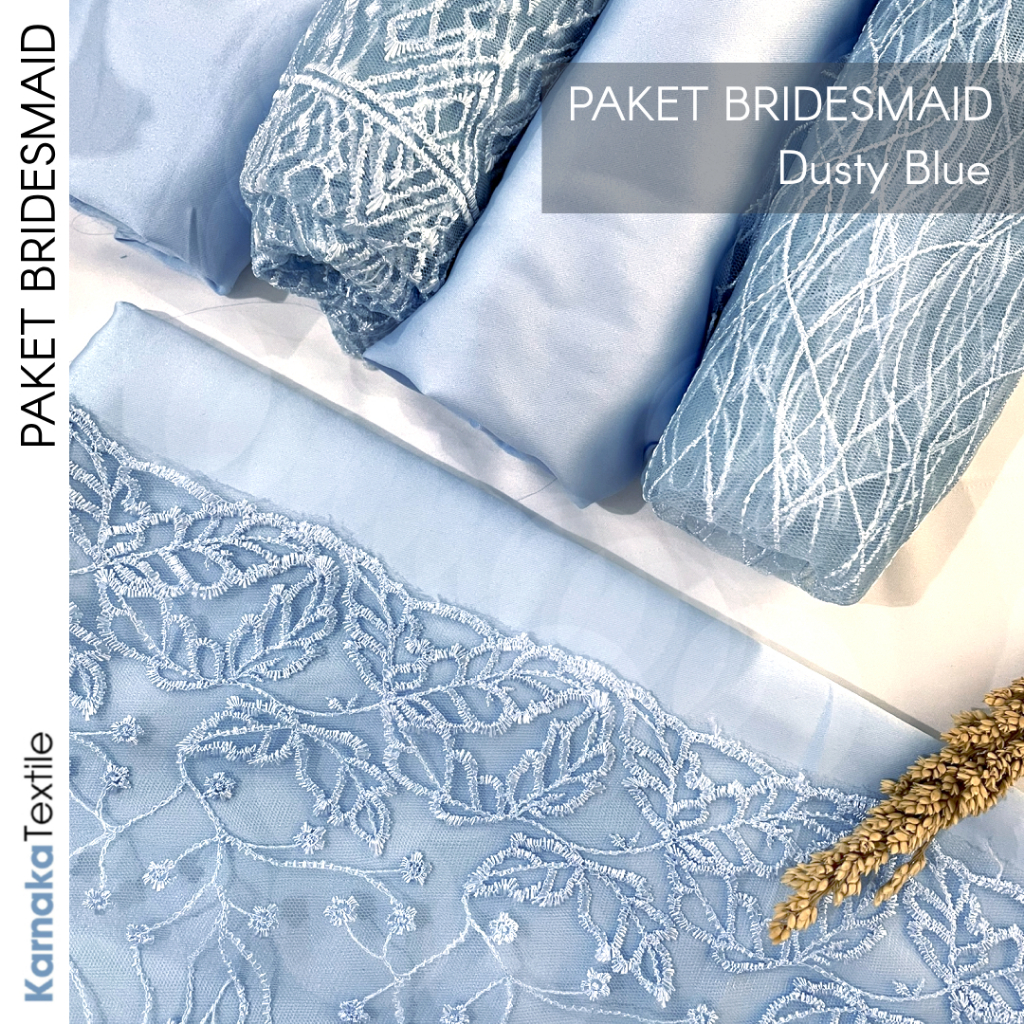 Paket Kain Bridesmaid Seragaman Lamaran Keluarga Lengkap Satin Kebaya Brokat Warna Dusty Blue