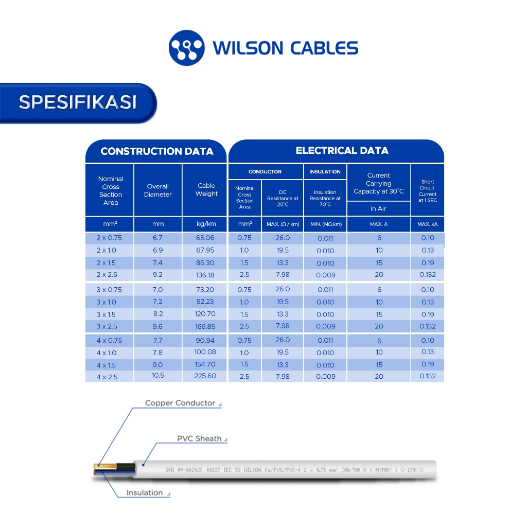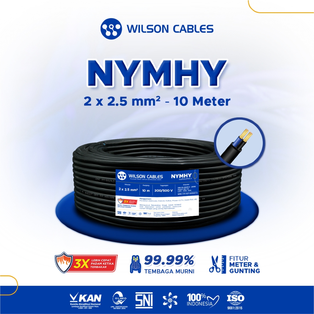 WILSON CABLES - NYMHY 2x2.5 mm² (10 Meter) - Kabel Listrik Tembaga Serabut
