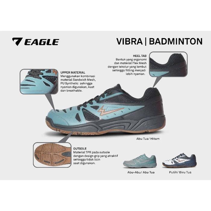 SEPATU BADMINTON EAGLE VIBRA ORIGINAL - SHOES BADMINTON VIBRA - ABU TUA/HITAM, 38