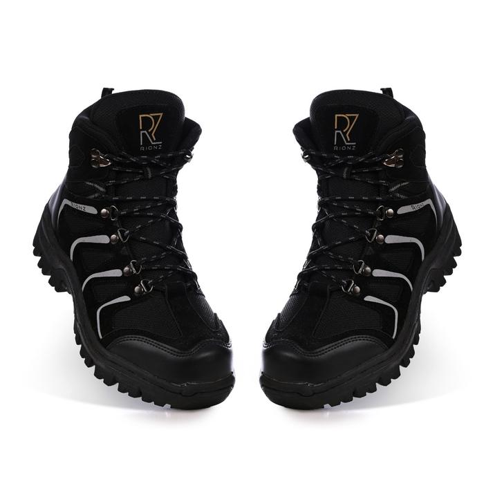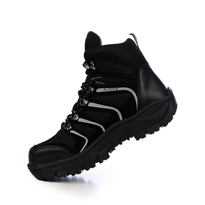 RIONZ ENZO BLACK - SEPATU BOOT PRIA SAFETY HIKING GUNUNG TRACKING UJUNG BESI KERJA PROYEK OUTDOOR TOURING ANTI LICIN SHOES HITAM - ENZO HITAM, 39
