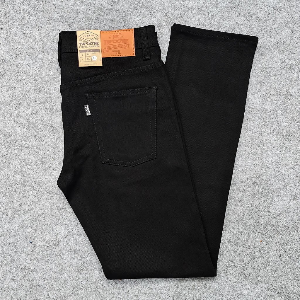 TWO ONE Celana Jeans Panjang Pria Slim Fit Denim Stretch Hitam Pekat