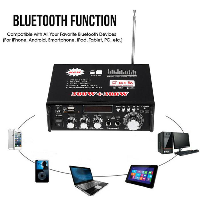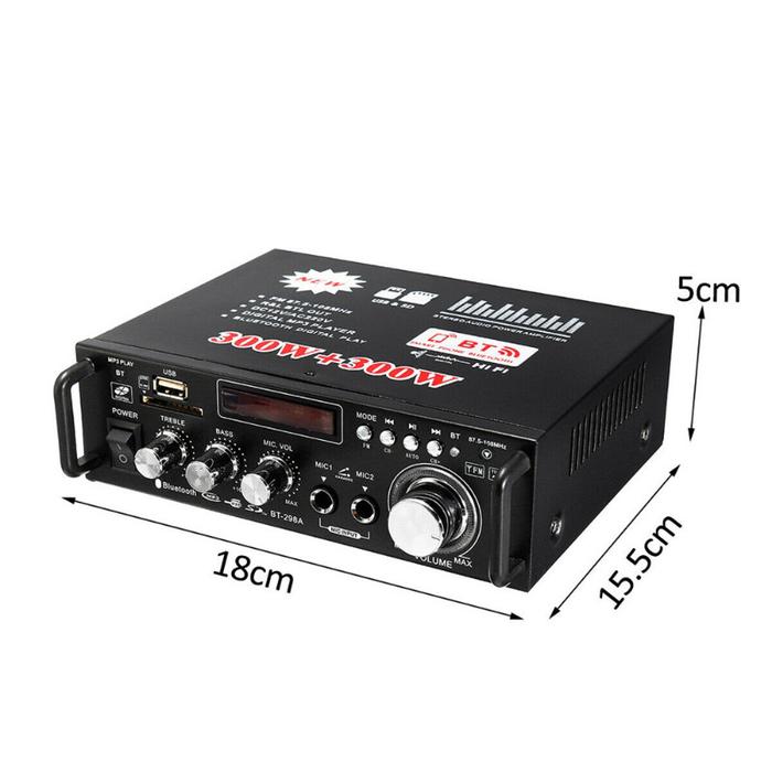 WER AMPLI AMPLIFIER BLUETOOTH KARAOKE HOME THEATER FM HI FI WER 300W+300W BUILT IN EQUALIZER DENGAN REMOTE CONTROL WER AMPLIFIER WIRELESS BT 5.0 KERNDY BT-198E 600W BT-298A WER AMPLI - BT-298A