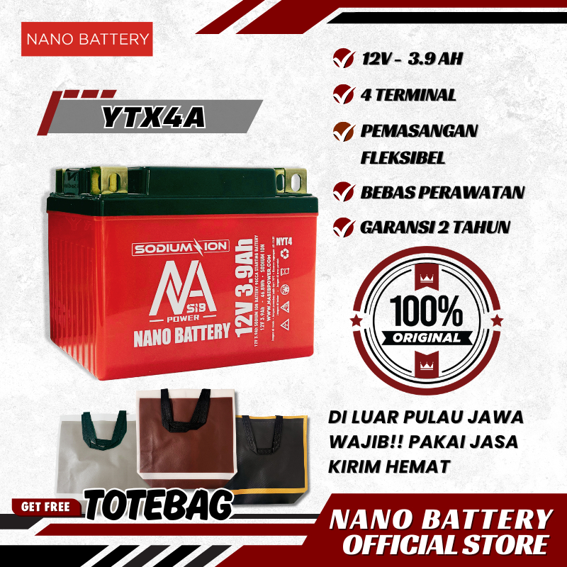mall inline badgeNANO BATTERY Aki Motor Sodium Ion 12V 3.9Ah Aki Motor YTX4A 12.4V3.9Ah Aki Kering Garansi Resmi Dari Pa