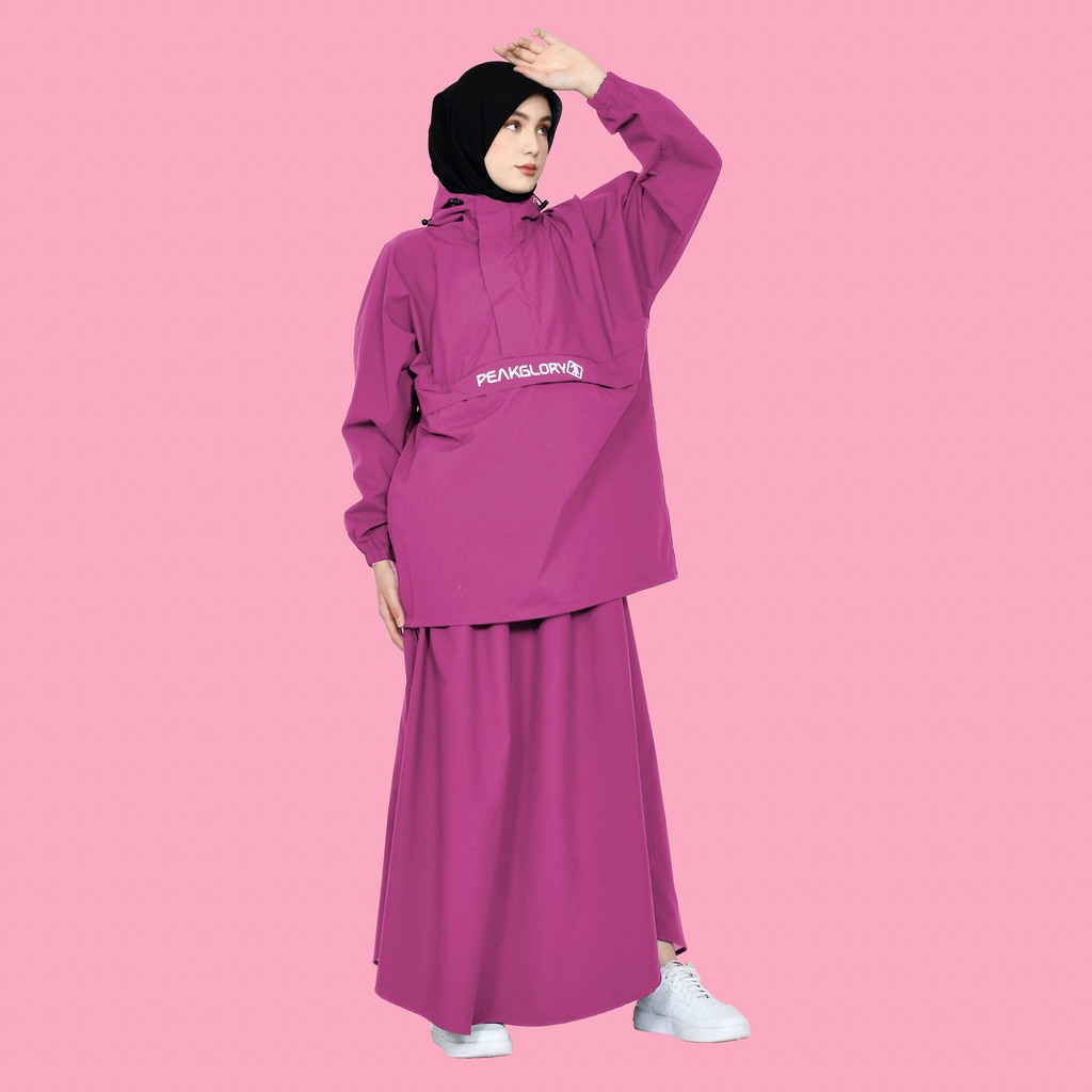 Jas Hujan Wanita Rok Mantel Hujan Setelan Baju Dan Rok Dewasa Bahan Tebal Kuat Lentur Anti Rembes Model Saku Kangguru