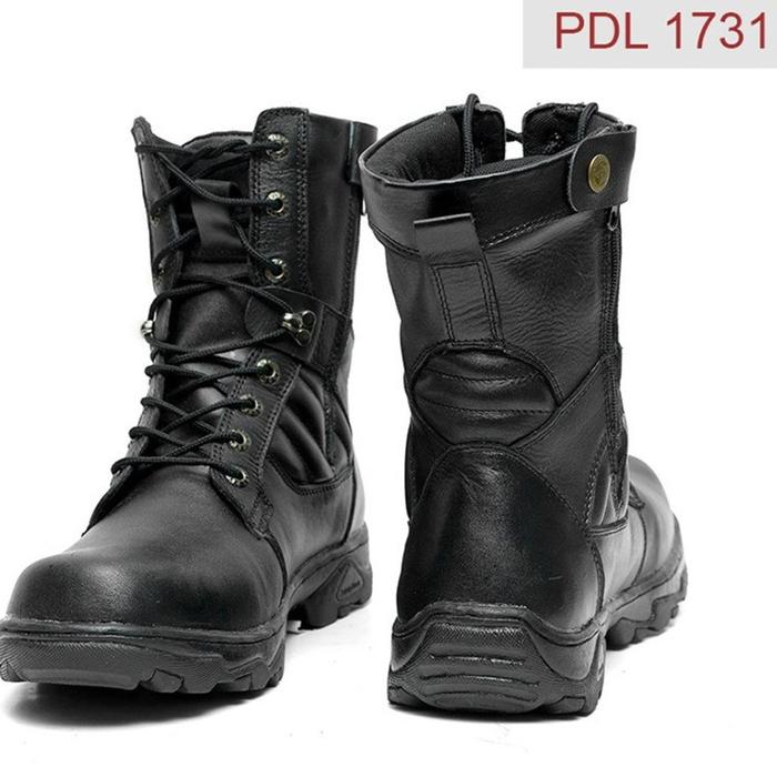 SEPATU PDL DINAS/ PDL SAFETY/ SEPATU PDL KULIT/ PDL RESLETING ODON CIBADUYUT 1731 BOOTS SHOES KERJA PRIA KARET - HITAM, 39