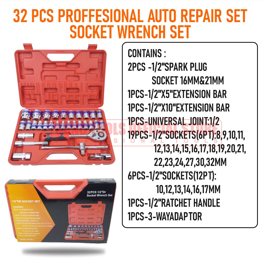 WOIRX TOOL Kunci Sock Set 1/2" inch 32pcs Kunci Sok Shock Socket Wrench