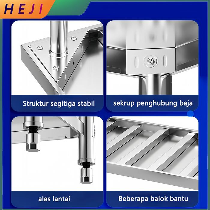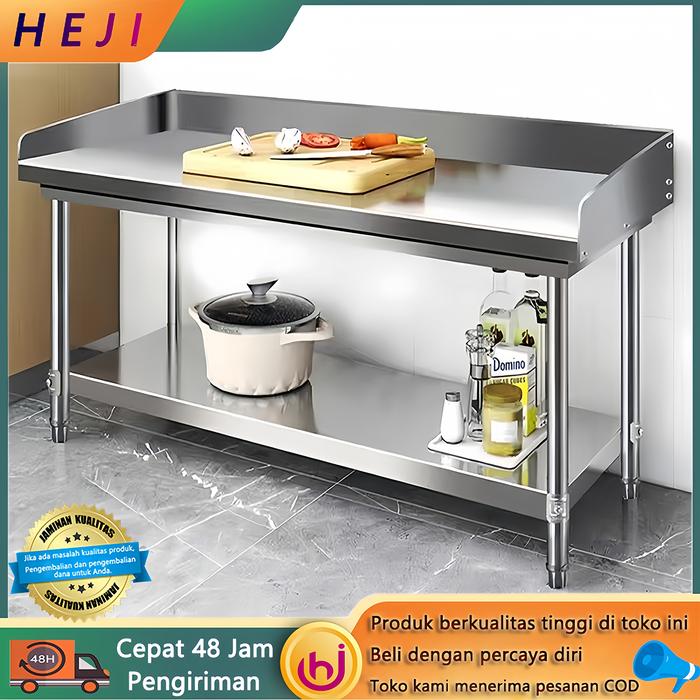 MEJA KERJA STAINLESS STEEL DAPUR KOMERSIAL 2-LS MEJA KERJA DENGAN OPERASI TEPI MEJA TEBAL - DB-80:805080CM
