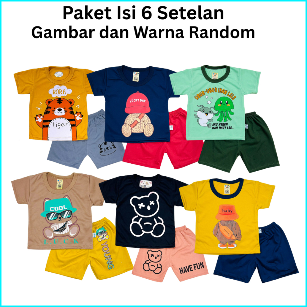 6 Pcs Setelan Anak Laki Laki Usia 0-2 Tahun Sni Setelan Oblong Baju Baby Gracia