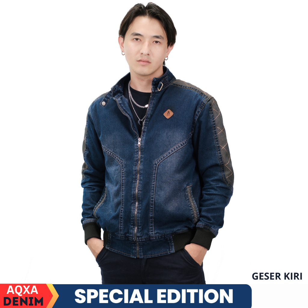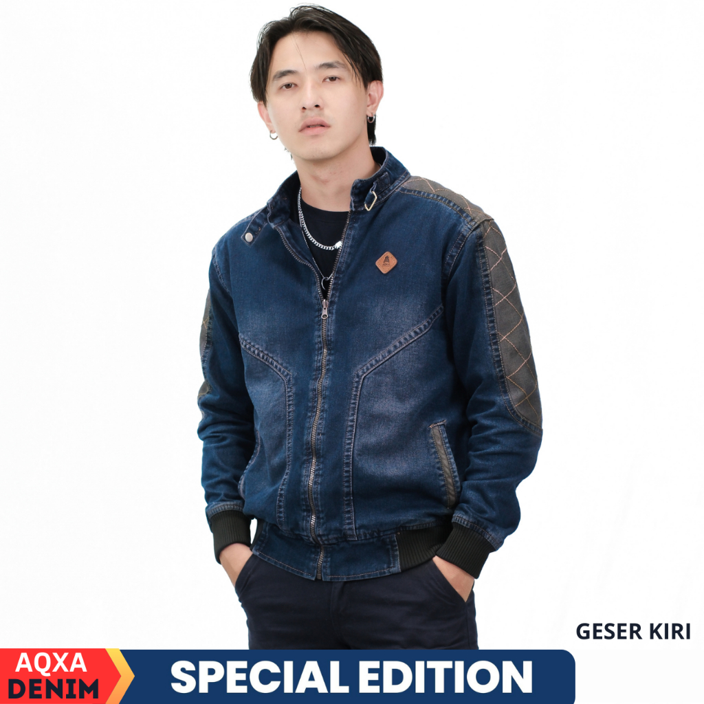 AQXA Jaket Jeans Denim Pria Bomber Jalit