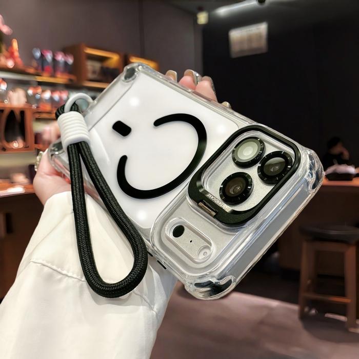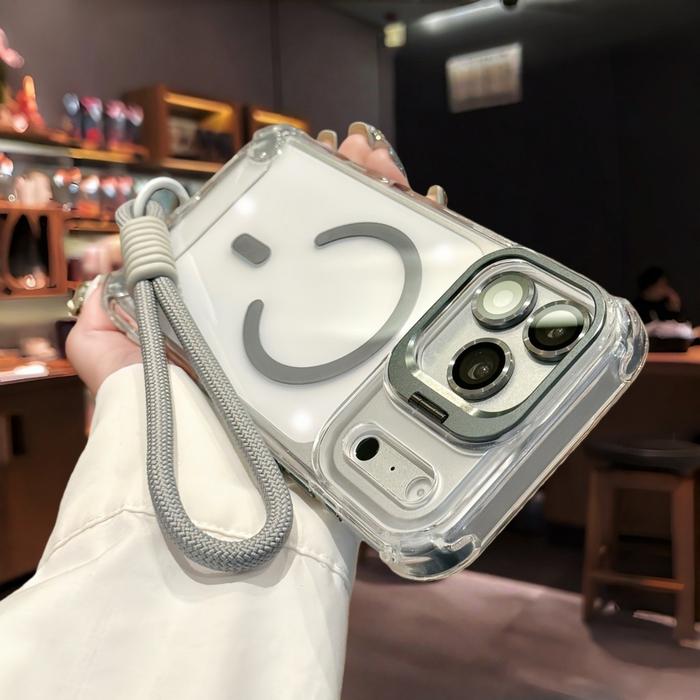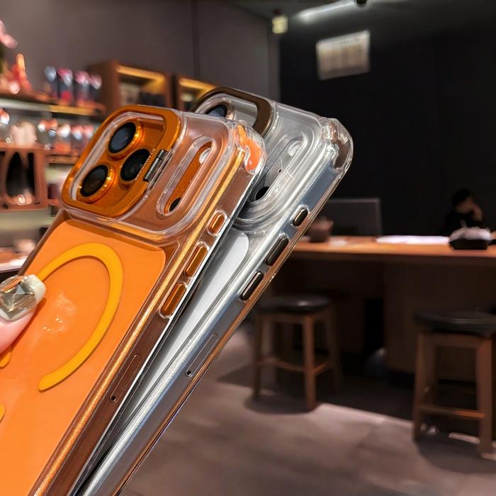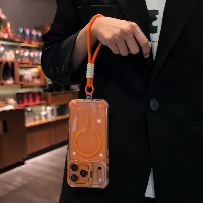 [IPHONE17 CASE] NYLON LANYARD CLEAR MAGNETIC CASE COMPATIBLE FOR IPHONE 17 PRO MAX 16 15 AIR METAL LENS HOLDER SHOCKPROOF AIRBAG ACRYLIC HARD BACK COVER - ORANGE, IPHONE 17 PRO MAX
