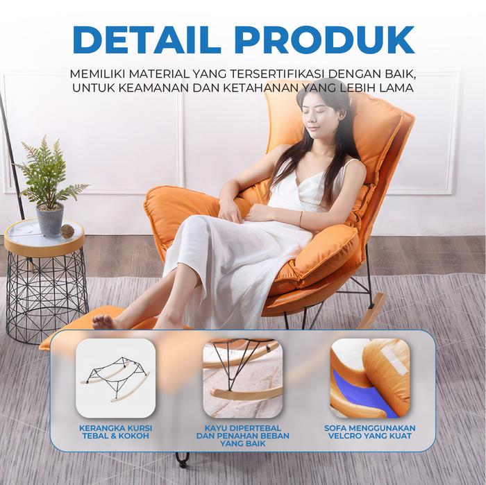 KURSI SANTAI GOYANG KURSI TERAS KURSI R TAMU DENGAN FOOT REST KURSI EMPUK KURSI BACA KURSI INDOOR COZY COMFY RELAX CHAIR - ZDY-11-ORANGE