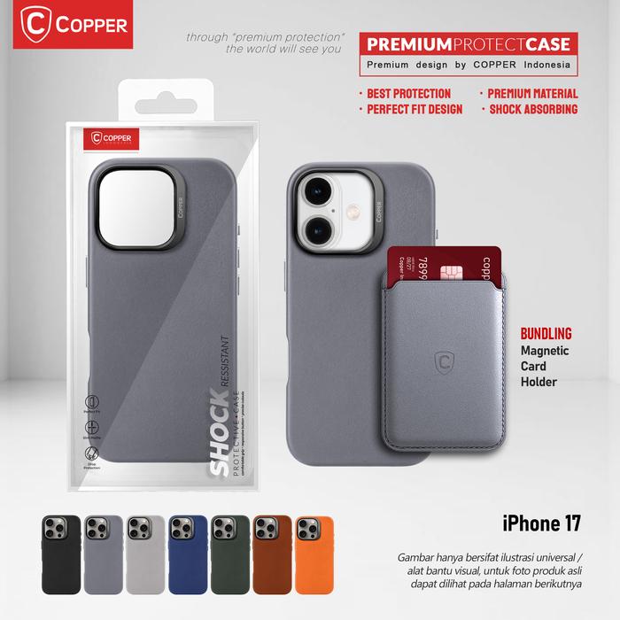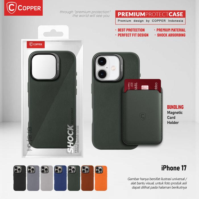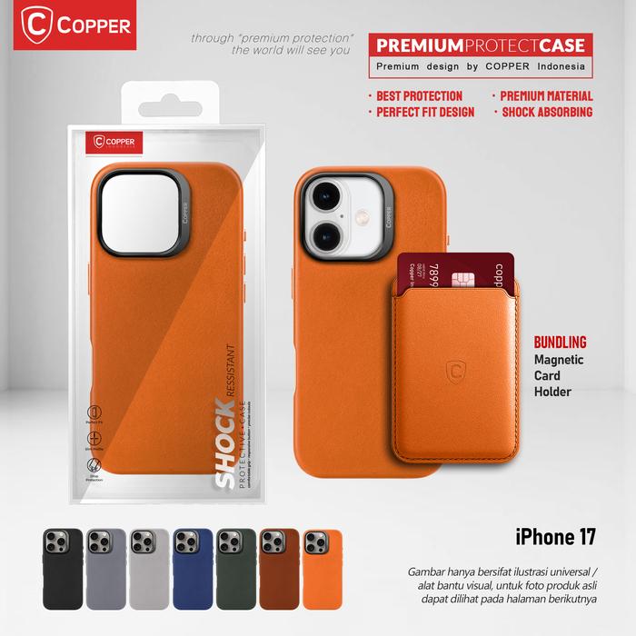 COPPER IPHONE 17 - COPPER SLIM CASE + MAGNETIC CARD WALLET, DESAIN ELEGAN & PERLINDUNGAN MEWAH, BAHAN TERBAIK, KOMPATIBEL MAGSAFE, WARNA HITAM - BLACK, CASE ONLY