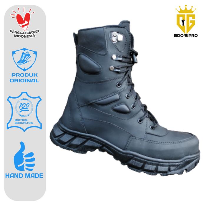 SEPATU PDL TNI LRI SEPATU TACTICAL SEPATU BIKER TOURING BLACK VENOM KARET BOOTS - HITAM, 39