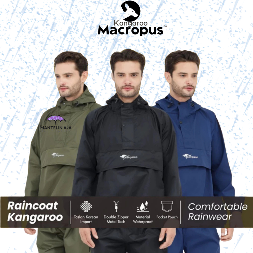 Jas Hujan Saku Kangguru Jumbo Xxxl Mantel Hujan Pria Wanita Bahan Premium Tebal Anti Rembes