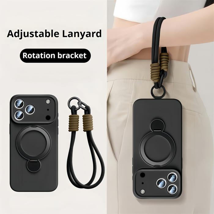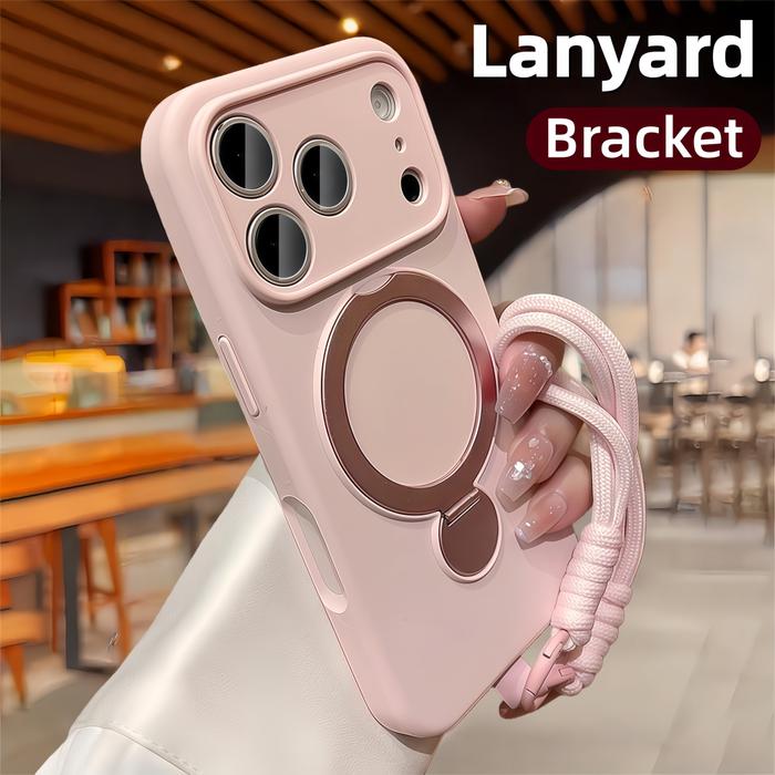 NEW PINK LANYARD 360 ROTATING BRACKET PHONE CASE FOR IPHONE 17 PRO MAX 17 PRO 17 LIQUID SILICONE CASING MAGNETIC SHOCKPROOF COVER - COSMIC ORANGE, IPHONE 17