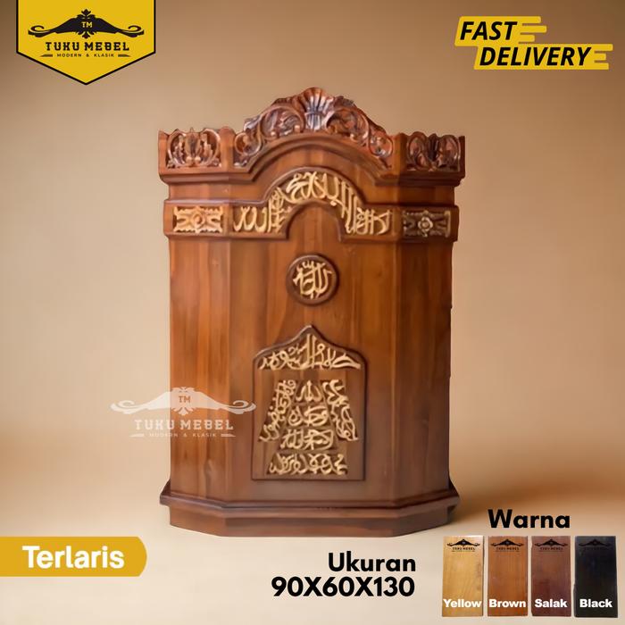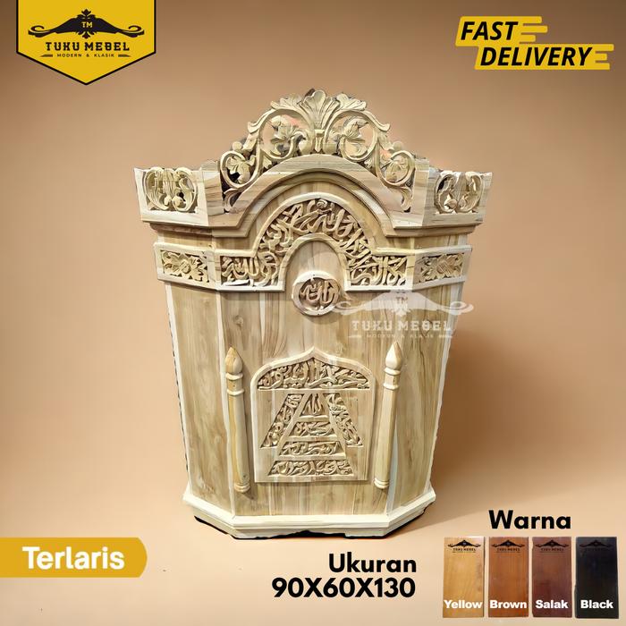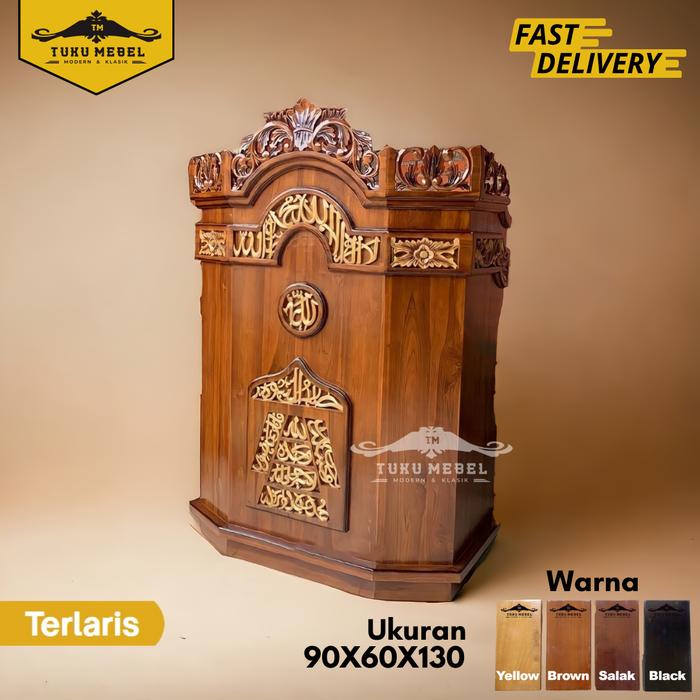 MIMBAR MASJID KAYU JATI MINIMALIS UKIRAN JEPARA - 90 X 60 X 130 CM - BELUM FINISHING