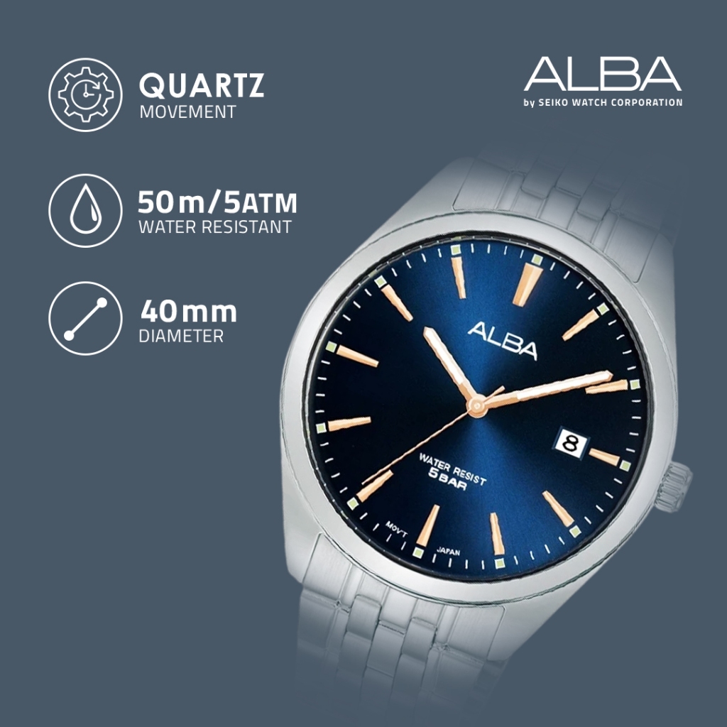 Alba Jam Tangan Pria AS9Q95 / AS9Q95X1 Quartz Blue Dial Stainless Steel Strap Watch