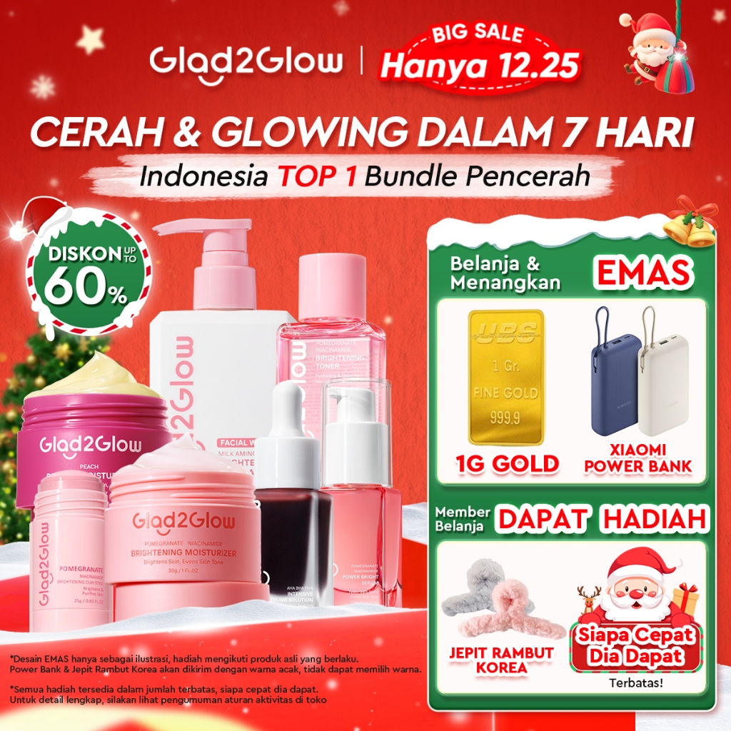 [Cocok Untuk Pemula]Glad2Glow Cerah Glowing Bundle all in 1 7in1-Brightening Moisturizer+Serum+Cleanser+toner+Peeling so