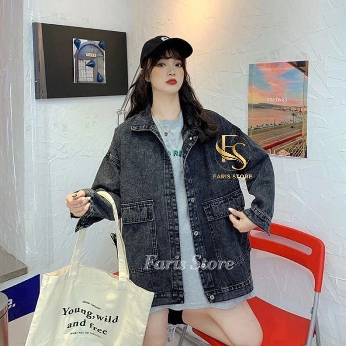 Jaket Jeans Oversize Denim Jacket Jumbo Wanita Tebal Premium