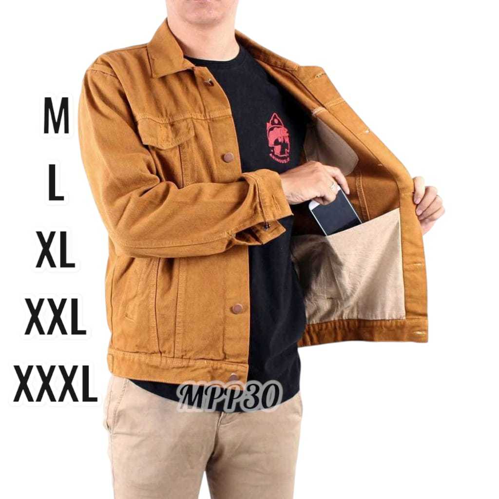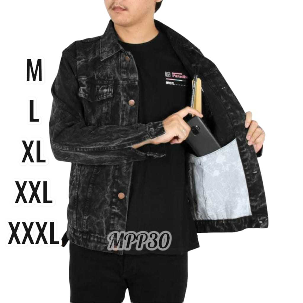 Jaket Jeans Pria M XXXL Jumbo Denim Black Sandwash Cowok Tebal 12 Ons