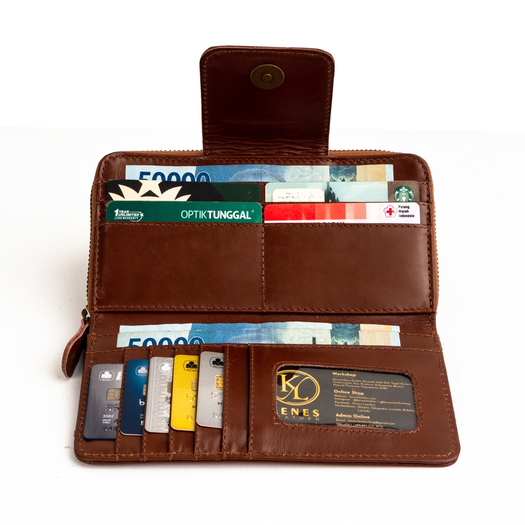 Kenes Leather Dompet Panjang Wanita Kulit Asli Emma Pull Up - Free Gravir Nama