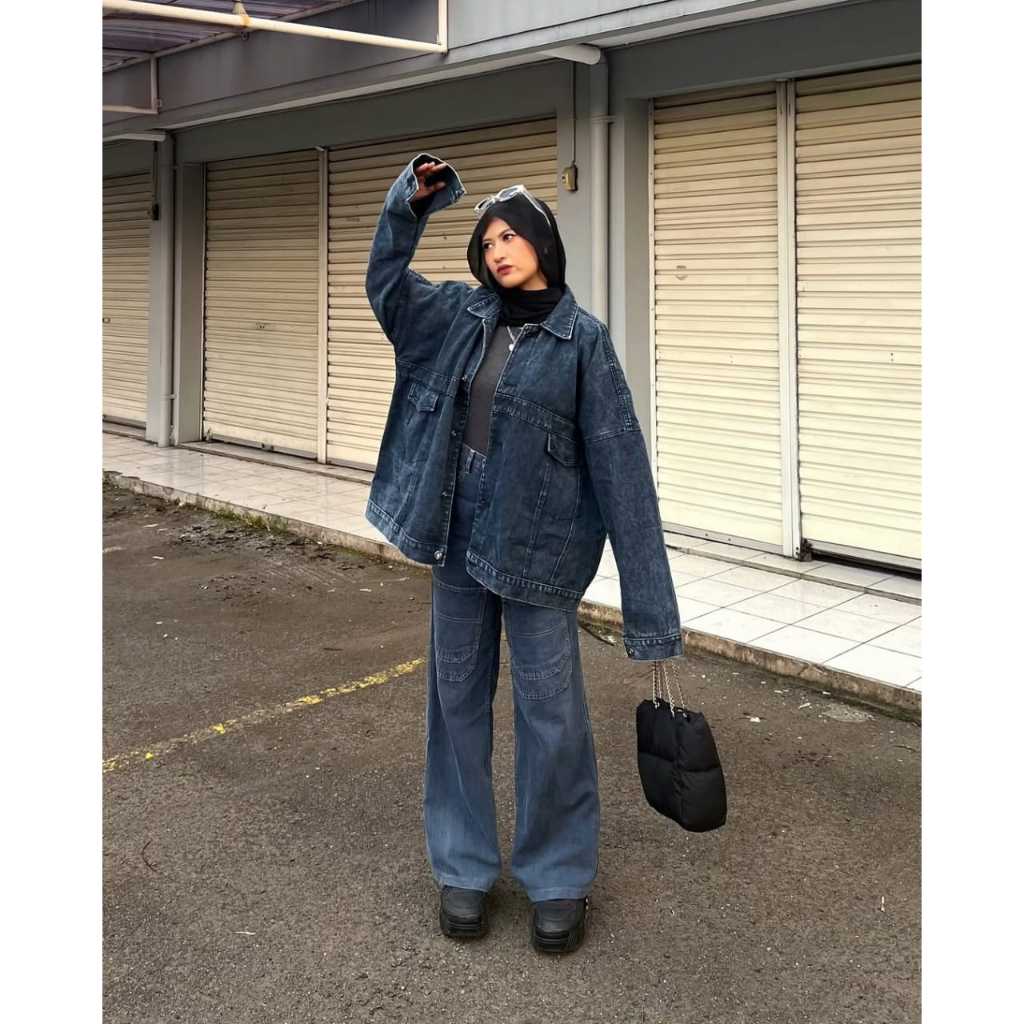 EMWEHA Jaket Denim Wanita Oversize Bigmouse