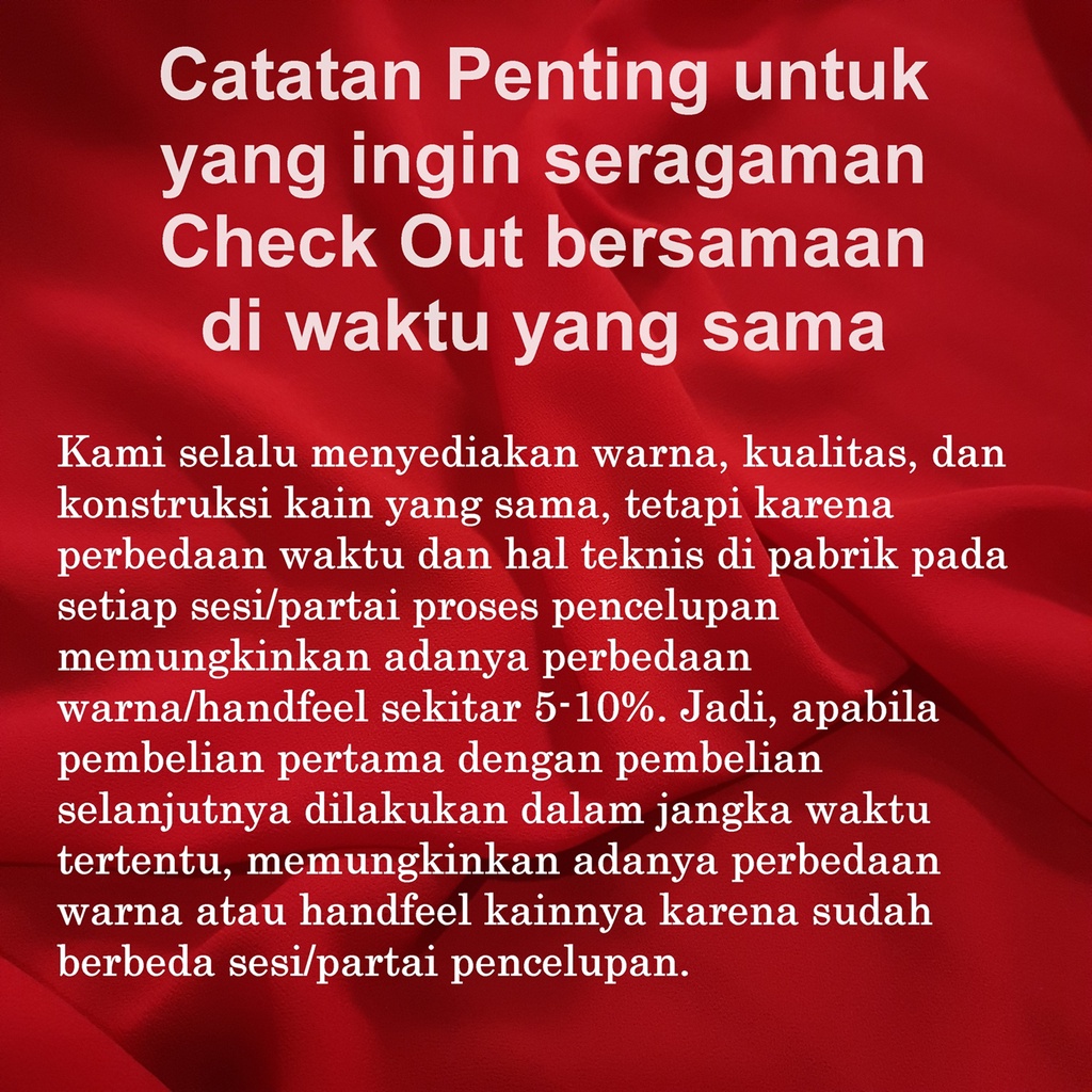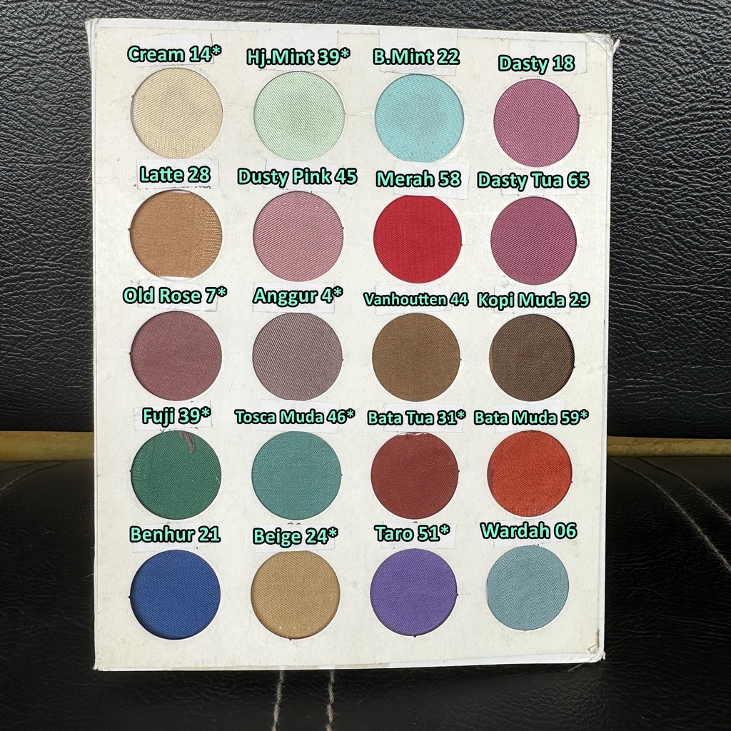 HITAM 01, NAVY 02, PUTIH BERSIH 03, BROKENWHITE/BW 04, ARMY 05, WARDAH 06, HIJAU WARDAH 07, MUSTARD 12, KUBUS/KUNYIT 13, SILVER MUDA 08/05/06