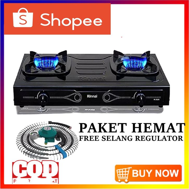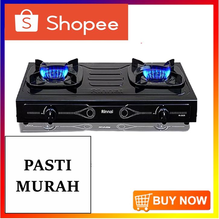 Kompor Gas Rinnai 2 Tungku RI 202S Free Selang Gas Regulator Stainless