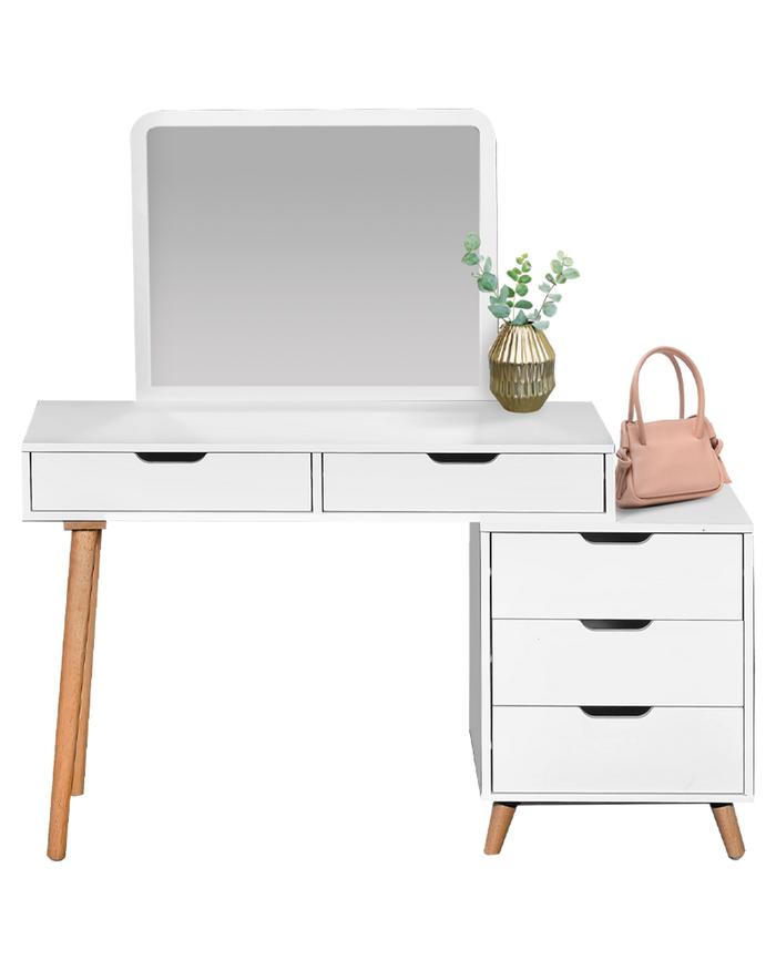 OFFO LIVING - MEJA RIAS MINIMALIS - MEJA RIAS 03 FULL PUTIH DENGAN KAKI KAYU - MEJA RIAS KOKOH DENGAN BANYAK LACI - MRSL-03