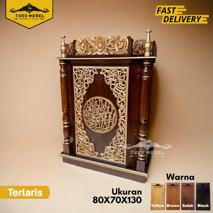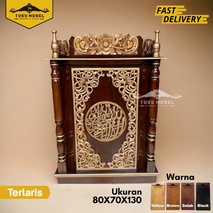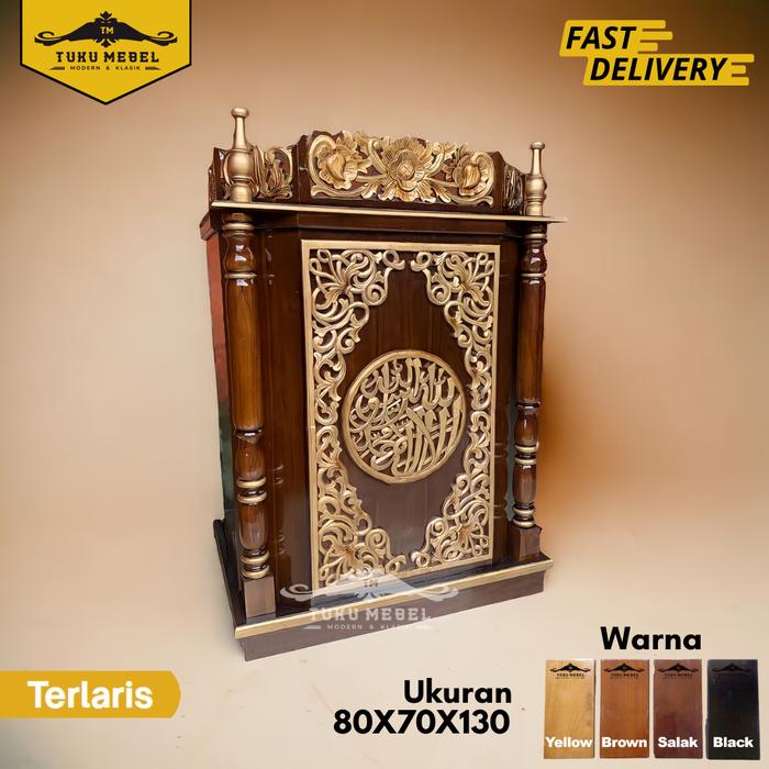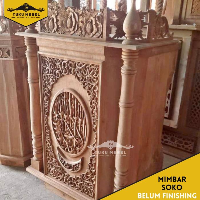 MIMBAR DIUM JATI UKIRAN KALIGRAFI MUSHOLA MASJID - 80 X 70 X 130 CM - BELUM FINISHING