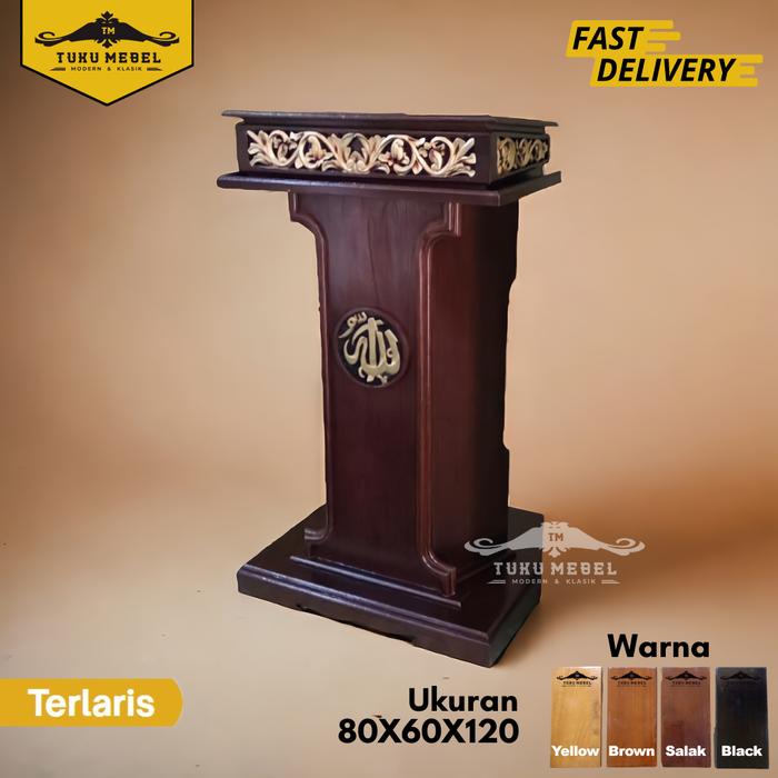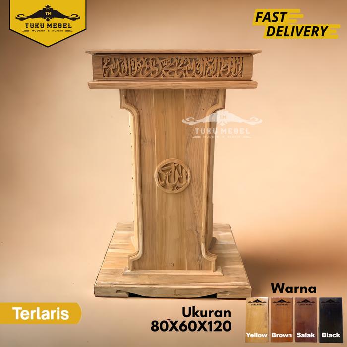 MIMBAR DIUM MASJID MINIMALIS UKIRAN KALIGRAFI JEPARA-80 X 60 X 120CM - BELUM FINISHING
