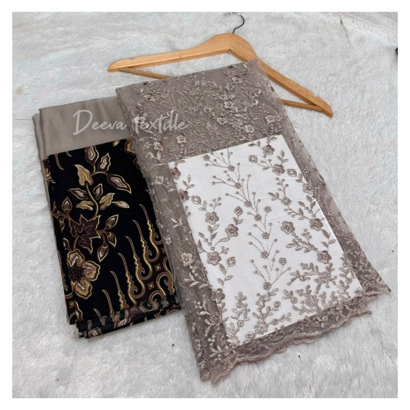 SetPaket Kain Bridesmaid Tile Floral Bordir,Satinfuring & Batik 1set kain kebaya