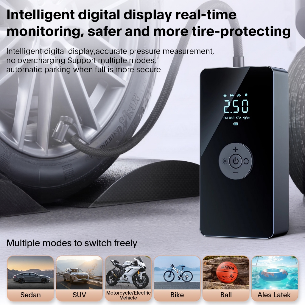 Amazefan 8000mAh pompa angin mobil inflator pompa ban mobil elektrik pompa mobil portabel Car Air Pump ban motor aksesor