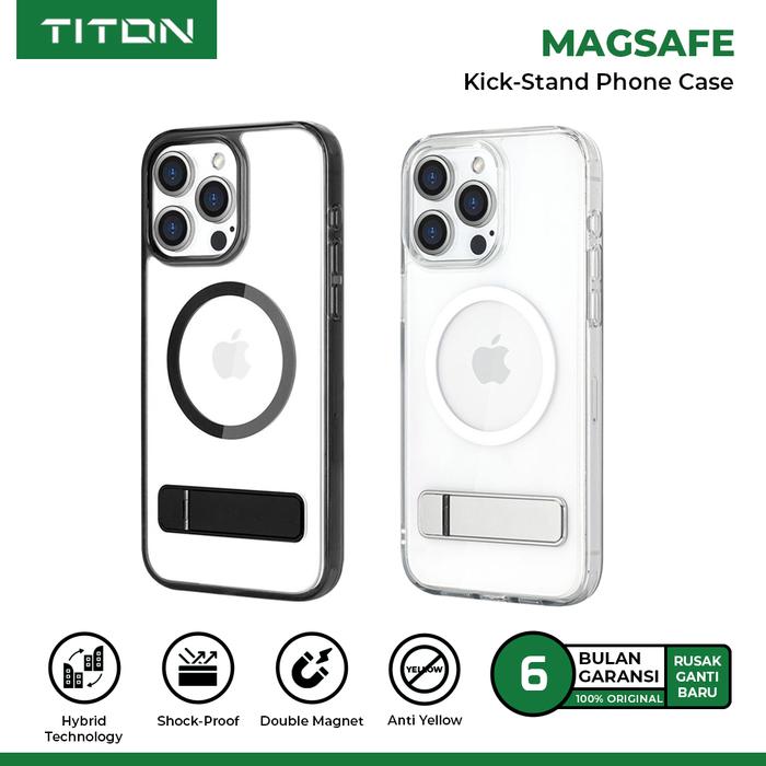 TITON MAGSAFE STAND CASE IPHONE 13 14 15 16 17 PRO MAX MAGFIT ANTI CRACK HARDCASE SOFTCASE CASING - IPHONE 13 PRO, HITAM