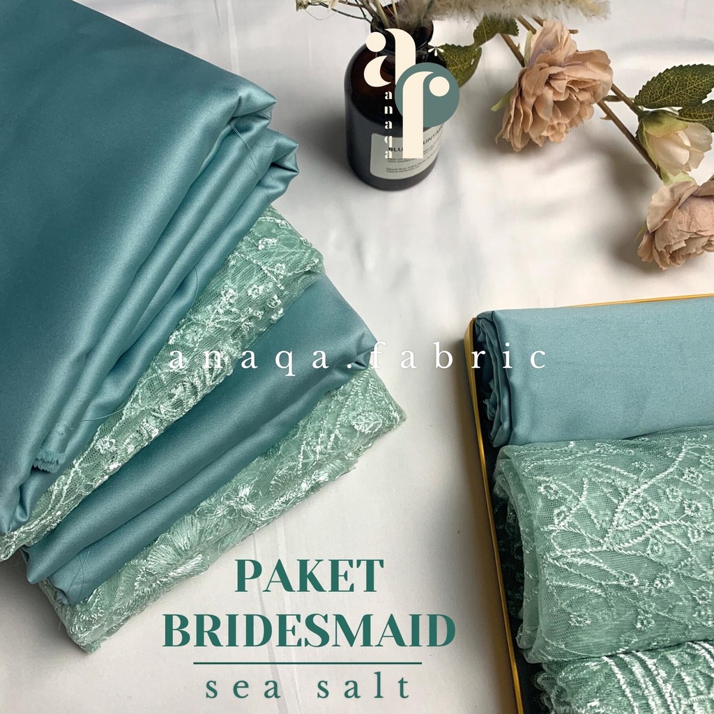 Paket Kain BRIDESMAID PREMIUM Lamaran Seragaman Keluarga Wisuda Lengkap Satin Kebaya Brokat Warna Sea Salt