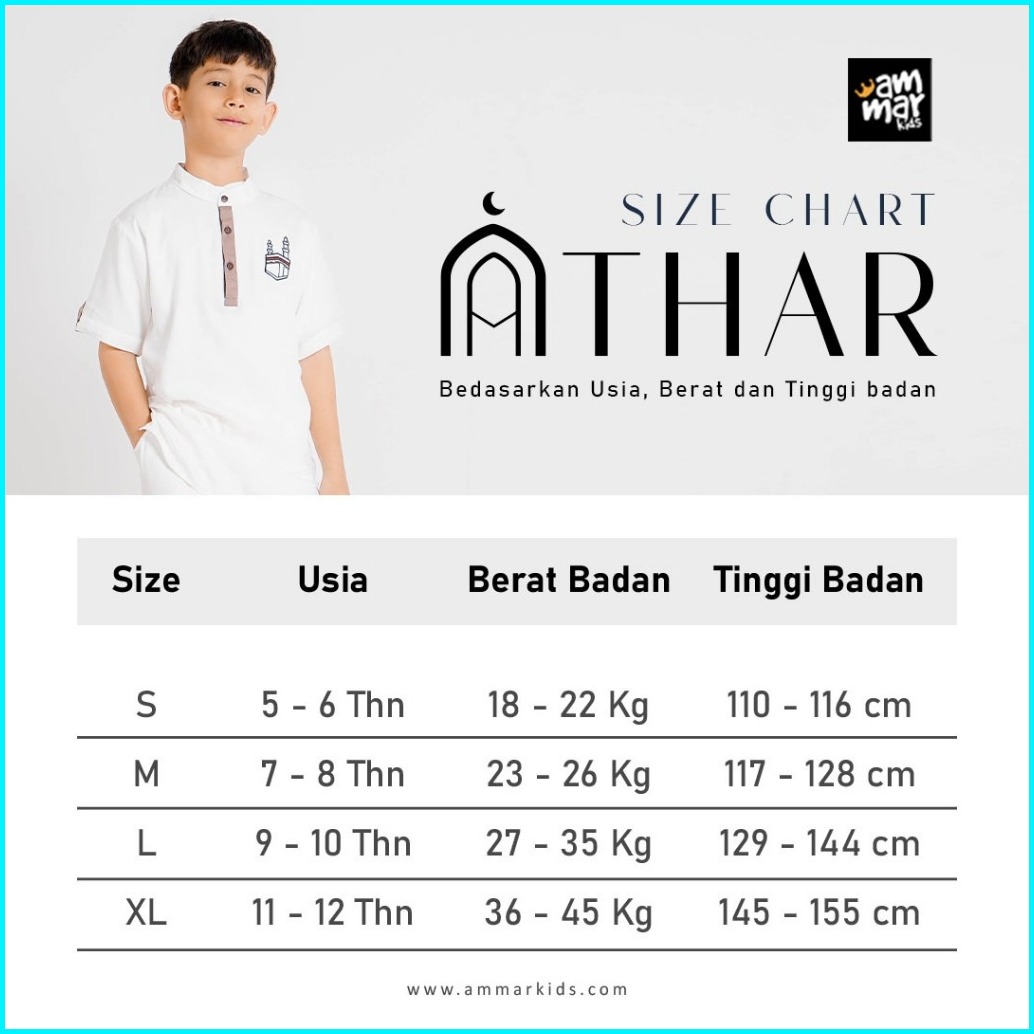 Ammarkids - Kurta Athar Baju Setelan Muslim Anak Laki-laki 3 - 12 Tahun