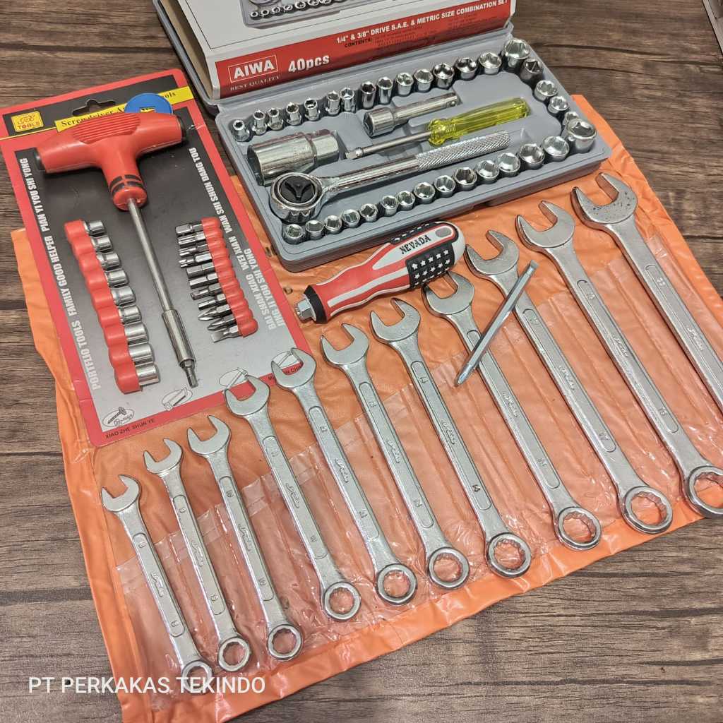 PAKET MURAH Kunci Shock Sock Set 40 Pcs+Ring Pas Set 8-22Mm+Obeng T Palu+Obeng Plus Minus / Alat Perbaikan Motor Mobil K