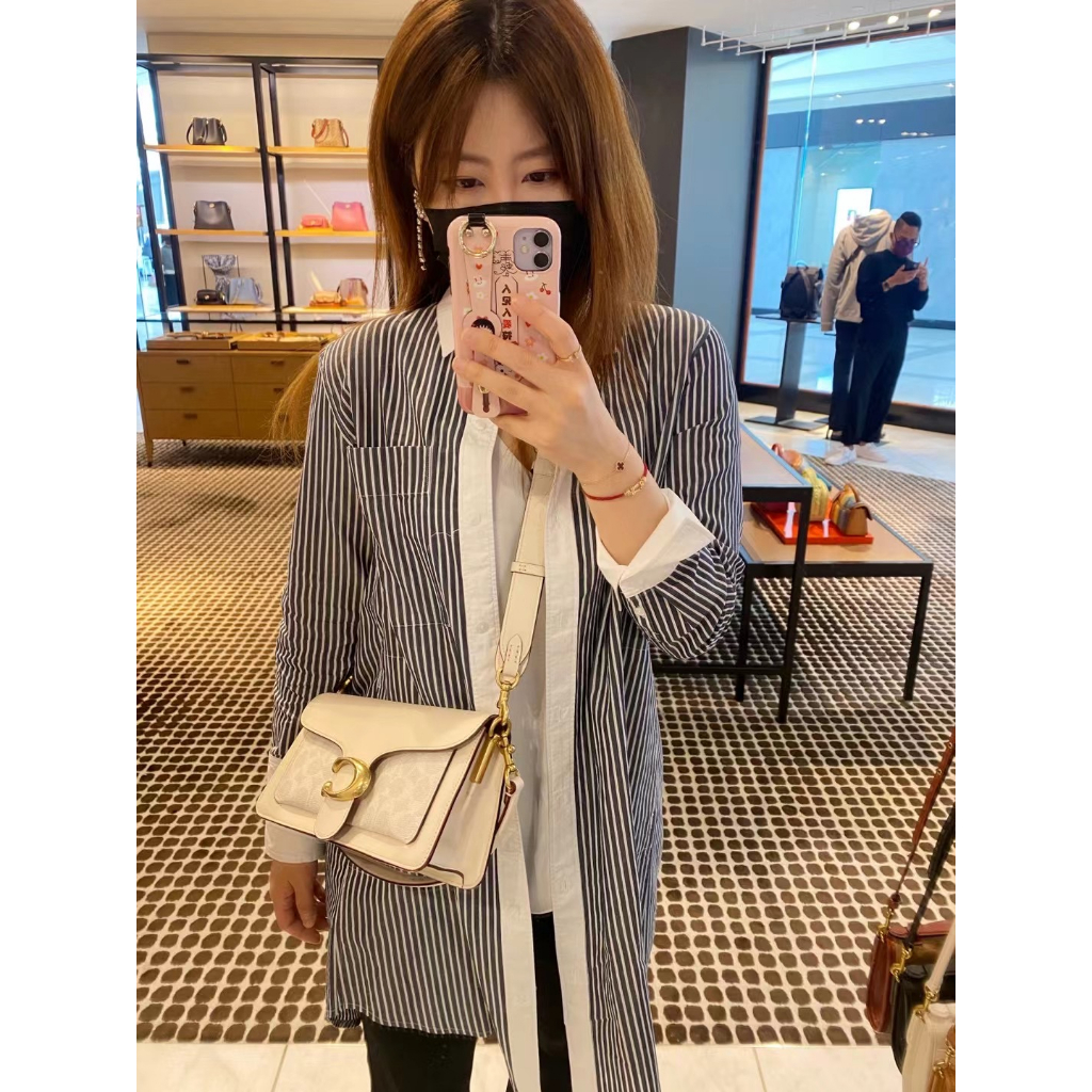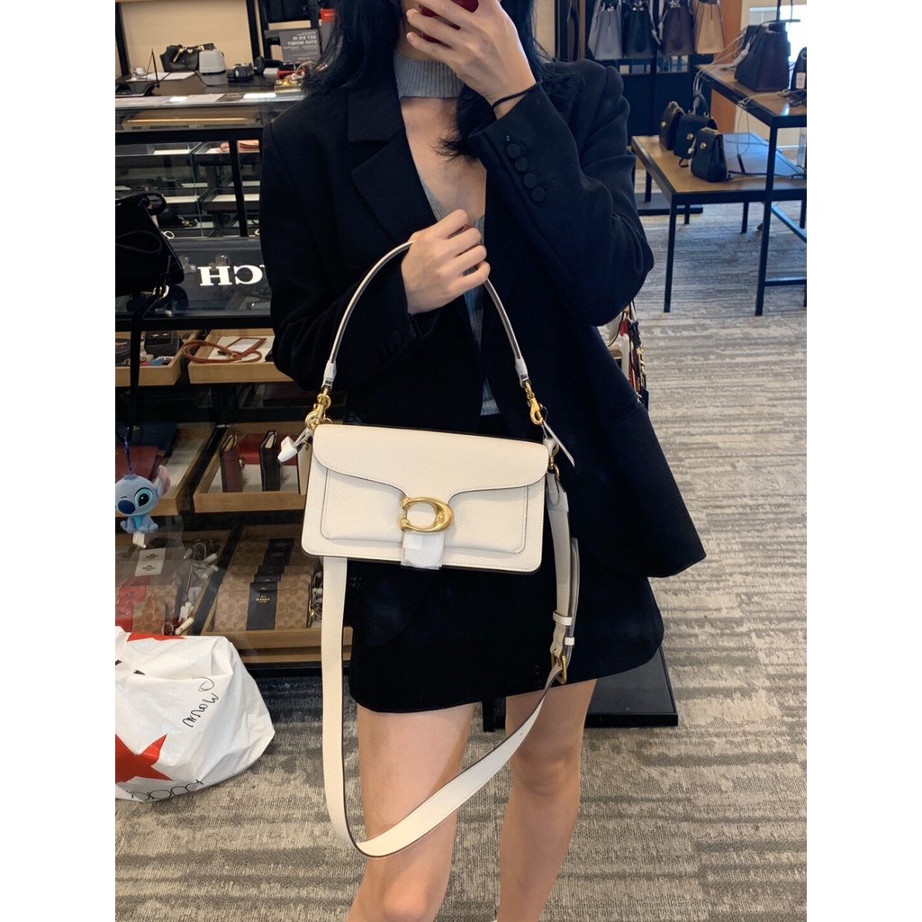 Coach Tabby Shoulder Bag 26 With Signature Canvas Chalk Tan Black