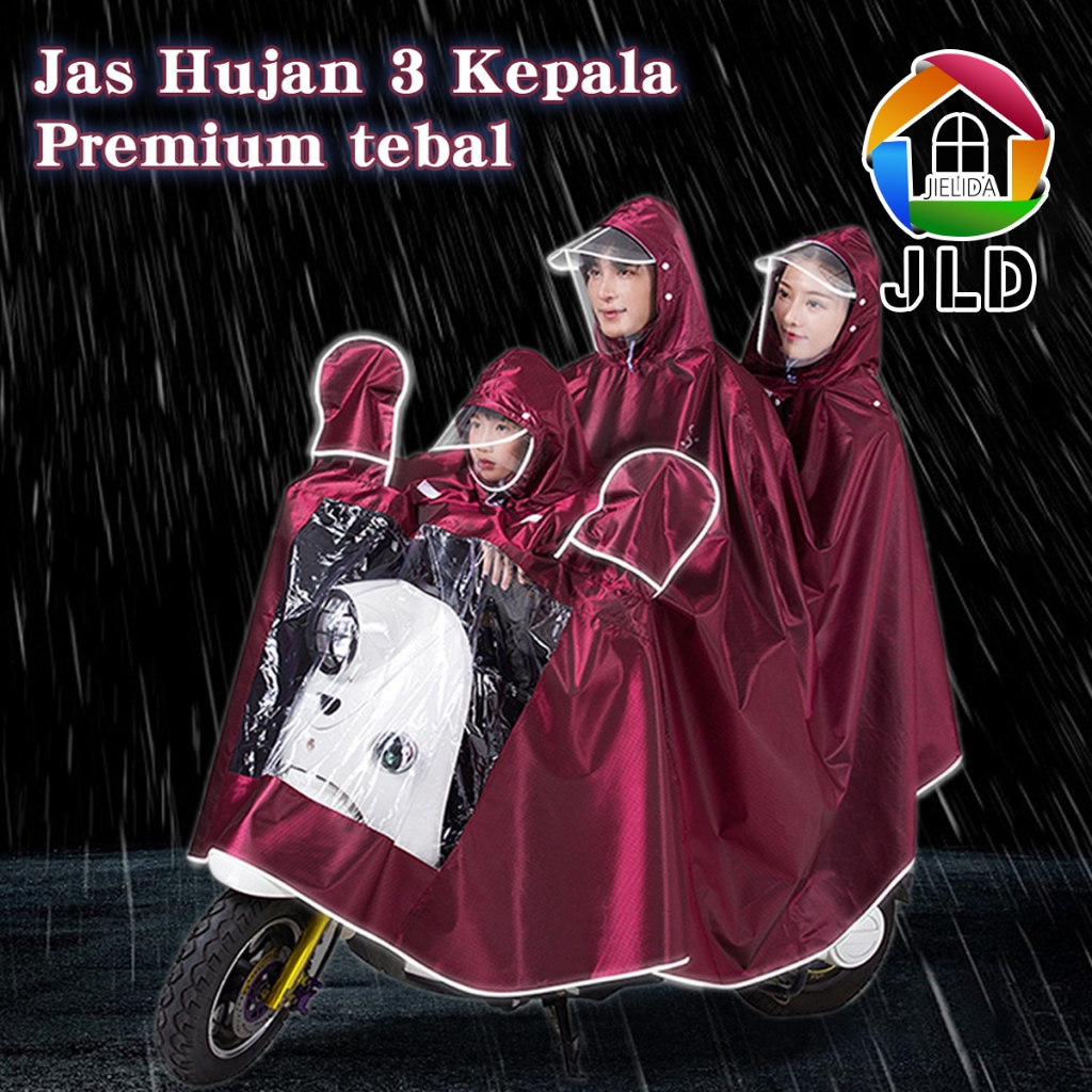 Jielida 3 In1 Jas Hujan Motor 3 Kepala / Jas Hujan Anti Rembes / Full Body Motorcycle Raincoat Hujan Bahan Super Tebal K