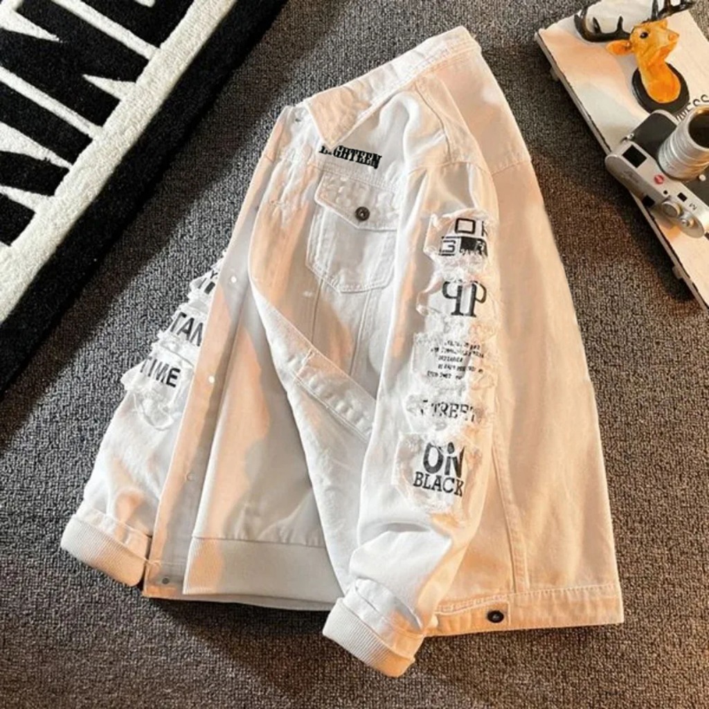 Jaket Jeans Denim Pria Wanita Tebal Bordir SWAG HITAM Putih DISTRO PREMIUM QUALITY M,L,XL,XXL,3XL