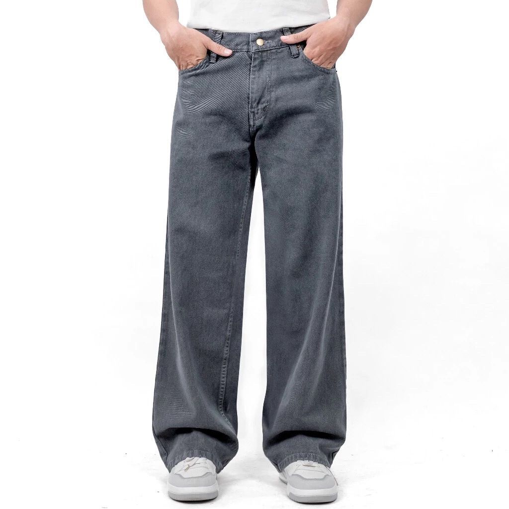 Celana jeans standar panjang jumbo pria basic gombrong reguler cowok dewasa bigsize